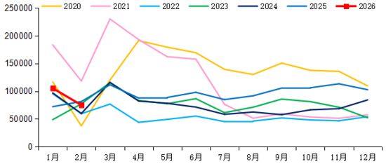 第一商用车网数据显示,2026年2月我国重卡销量约7.5万辆。环比2026年1月下降近3成,比上年同期的8.14万辆下滑约8%,但从全年走势来看,这种变化更多是春节因素带来的季节性波动。