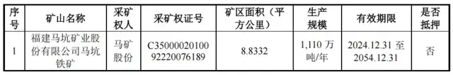 (马矿股份采矿权情况,图源:公司招股书,下同)