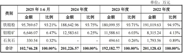 业务高度集中于铁精粉,意味着铁矿石产品价格的波动与公司的经营业绩直接相关。