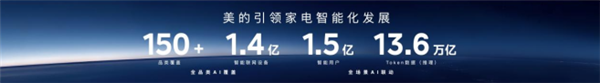 首先是“一张更全面的智能家电网络”。目前,美的全品类5亿台家电具备联网能力,全球范围内已实现超过1.4亿台智能家电联网,超过1.5亿智能用户接入,完成超过150个品类的家电产品AI化布局。这些智能家电与美居App、智慧中控屏等共同构成全空间交互入口,成为家庭的感知、连接与交互中心。