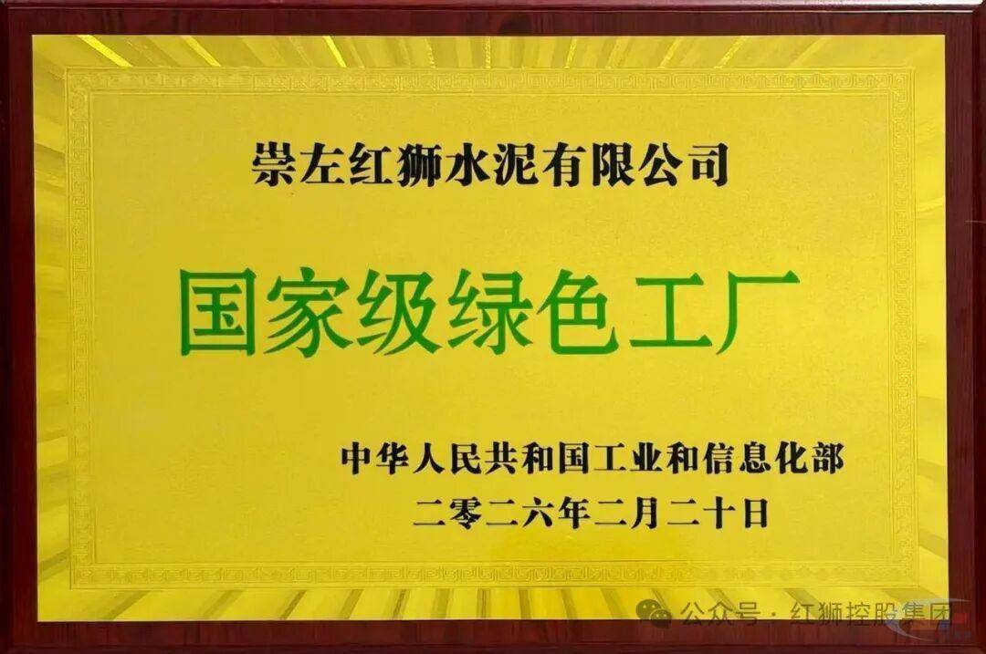 近日,工业和信息化部公示《2025年度国家级绿色工厂名单》,红狮集团下属子公司崇左红狮成功入选,充分体现了公司在节能降碳、低碳生产、循环利用等方面的卓越成效。