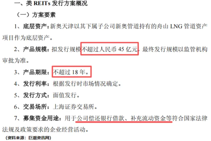 2月3日,民营燃气大王新奥股份公告称,拟以舟山LNG管道作为底层资产发行规模不超过45亿元的类REITs,用来偿还银行借款和补充流动资金。