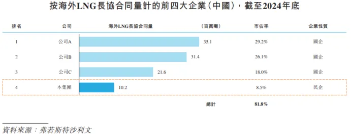 截至2024年底,新奥股份海外LNG长协合同签约量约为10.2百万吨,占整个市场份额的8.5%。虽跟国内少数国企不能比,但在民营企业中,新奥股份是海外长协合同量最大的。