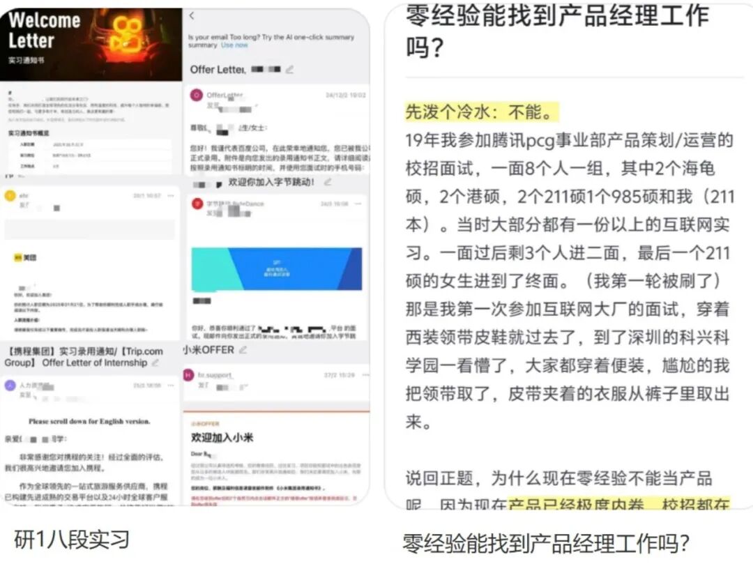 许多应届生眼里,产品经理不卡专业、技术,相比其他非技术岗,工资高,晋升前景好,是“文科生梦中情岗”。这也使得产品经理的岗位竞争在大厂里往往是最激烈的岗位之一,“8段实习上岸大厂产品经理“的分享屡见不鲜。