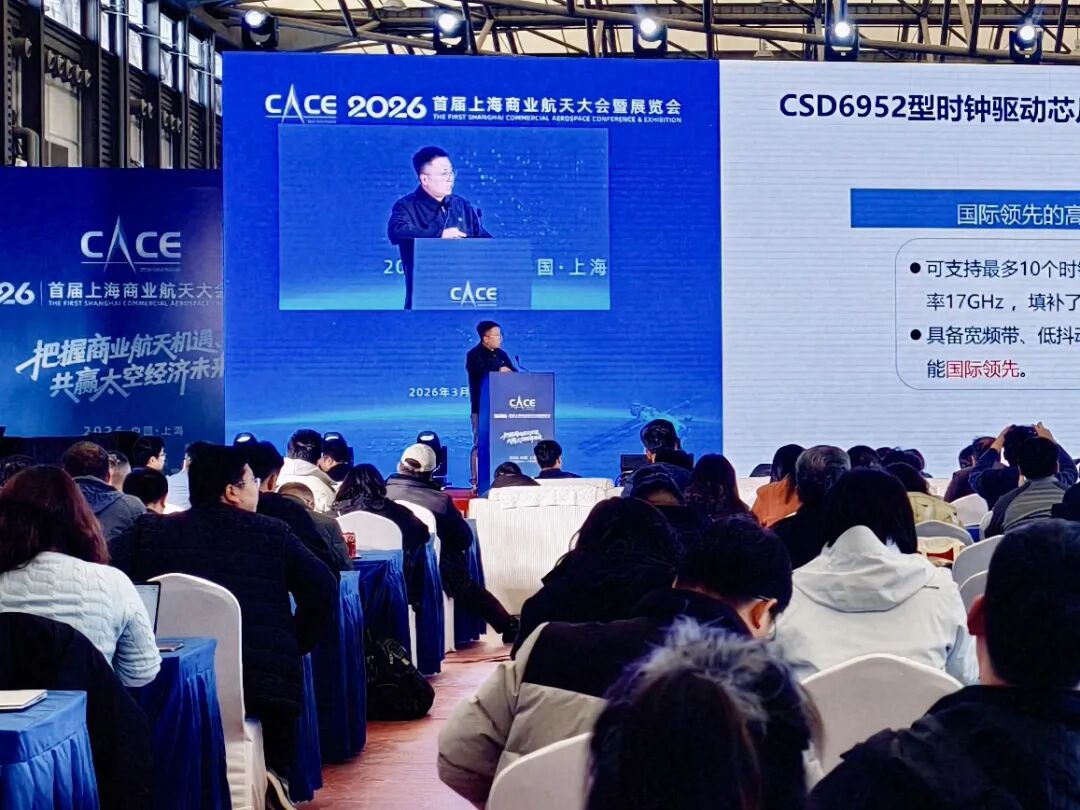2026年3月12日至3月14日,2026上海商业航天大会暨展览会在上海新国际博览中心盛大举行。成都华微电子科技股份有限公司(以下简称“成都华微”)在中国振华电子集团有限公司的统一组织下,携超高速ADC新品以及高速高精度ADC/DAC、TSN时间敏感网络芯片、FPGA等核心产品闪耀亮相,全面展示了公司在航天电子领域的技术积淀与创新成果,公司副总工程师在主会场分论坛上分享了公司在技术创新方面的重大突破。