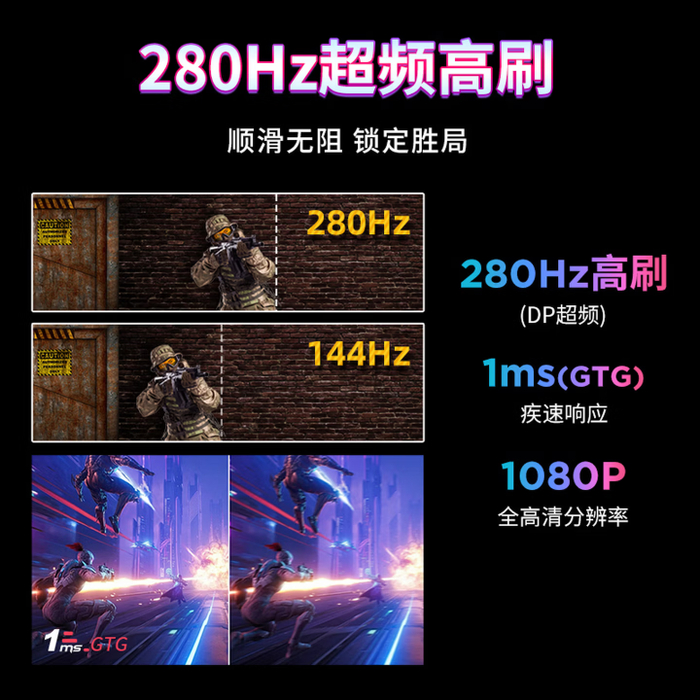 优派VX24G11的核心亮点在于1080p、280Hz的超高刷新率,超越同价位电竞屏,每秒可输出280帧画面,能有效消除高速游戏场景中的画面拖影与卡顿,尤其适配FPS类对画面响应速度要求极高的游戏。