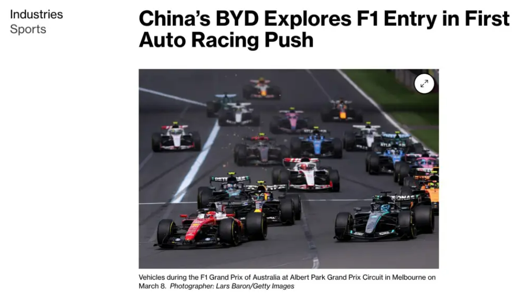 据彭博社报道,中国车企比亚迪正内部评估进军顶级赛车赛事的可行性,其中包括世界最顶级汽车赛事——F1一级方程式赛车,以及勒芒24小时耐力赛等赛事。