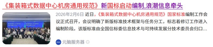 值得注意的是,2026年2月,《集装箱式数据中心机房通用规范》国家标准修订工作正式启动,由浪潮信息牵头,联合运营商、设计院、测评机构及产业链伙伴共同推进。