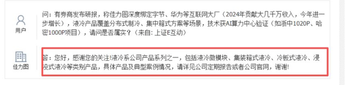 集装箱数据中心:公司在交易所互动平台明确回应,液冷微模块、集装箱式液冷及冷板式方案已通过字节跳动、华为等AI算力中心验证,并在浙中1020P、哈密1000P等项目中实现落地。