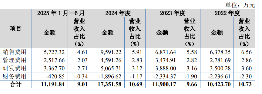 报告期内,公司期间费用分别为10,423.70万元、11,900.17万元、17,351.58万元和11,191.84万元,期间费用率分别为10.73%、9.66%、10.69%和9.01%。