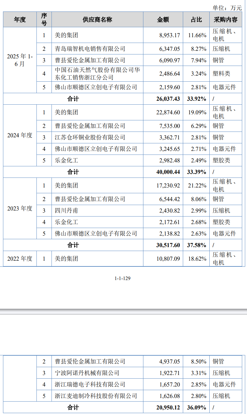 报告期内,随着公司业务规模的扩大,公司对于铜管的需求逐年上升,已合作供应商如曹县爱伦金属加工有限公司等因产能受限无法完全满足公司采购需求。江苏仓环铜业股份有限公司系国有控股企业金龙精密铜管集团股份有限公司的下属子公司,主营业务为铜管材、铜合金管材的生产及销售,年销售规模超百亿元,知名下游客户包括美的集团、格力股份等,产能丰富,且产品质量较高,公司为拓宽采购渠道,经对江苏仓环铜业股份有限公司产品质量、供货能力、运输便捷性等方面考察后,增加该企业为公司铜管供应商。