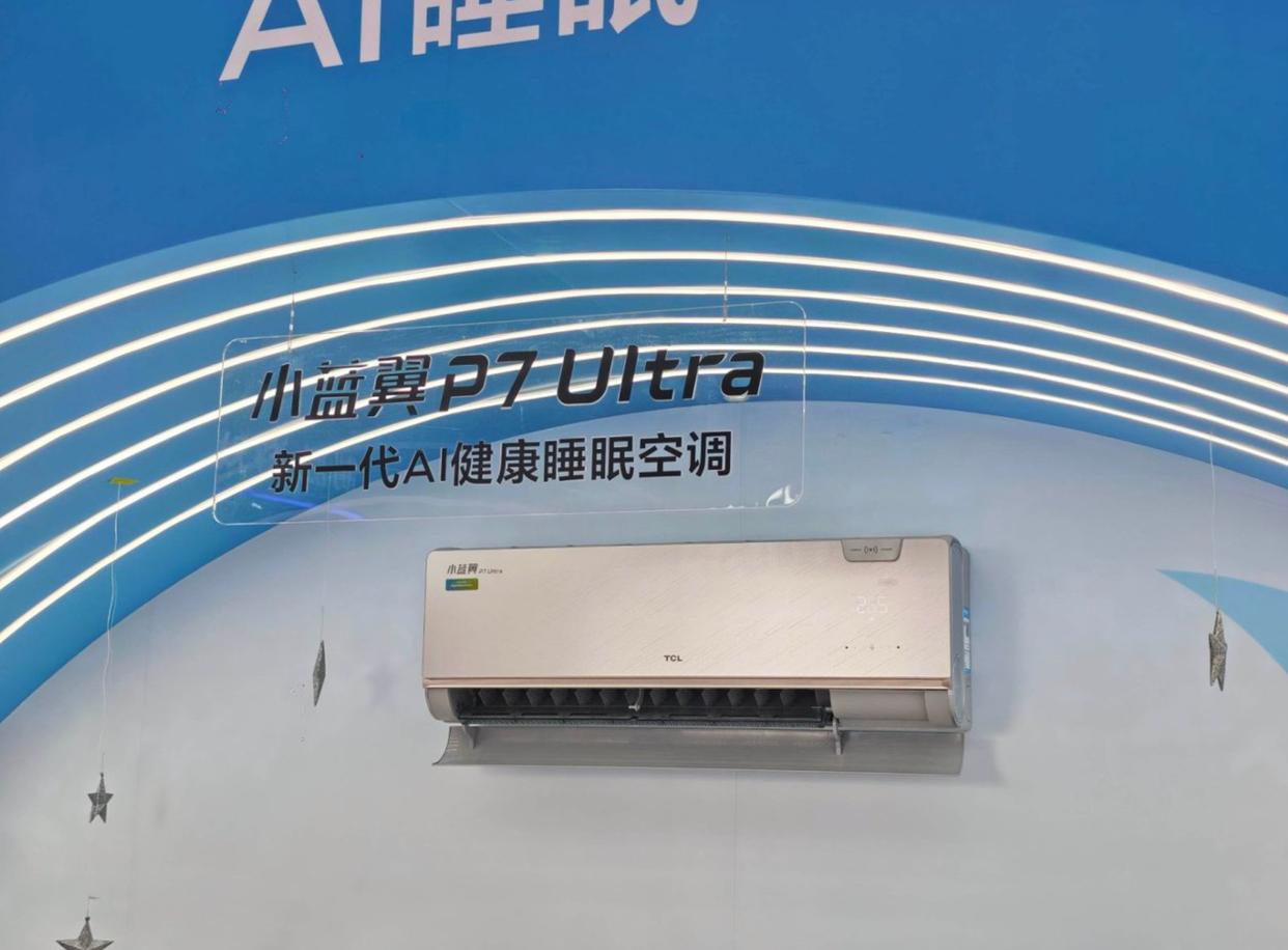 看完屏显和安防产品,再看日常用的空调、冰箱、洗衣机,每一款都有让人眼前一亮的设计。先说空调,两款小蓝翼P7 Ultra都很实用,一款专门针对卧室,搭载了毫米波雷达,能感知人的睡眠状态,自动调节温度、风速,还能联动新风,晚上睡觉完全不会被打扰,睡得特别香。