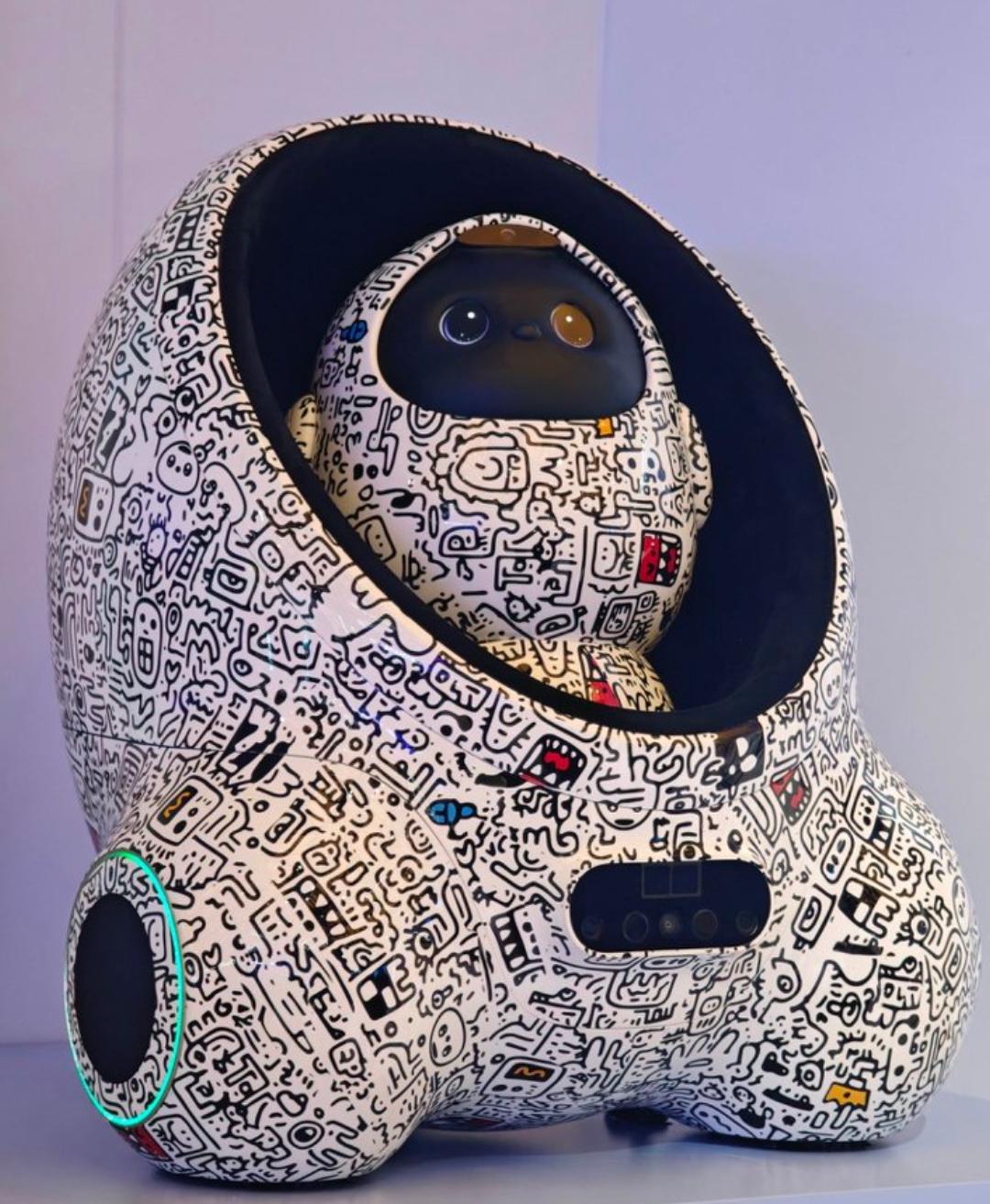 最有意思的是两款AI产品,一款是分体式AI陪伴机器人AiMe,长得特别可爱,还能移动跟拍,家人聚会的时候,它能自动捕捉美好瞬间,还能联动家里的其他家电,帮着控制灯光、空调,既是陪伴也是助手。另一款是儿童手表的桌面伴侣T宝,既能给手表充电,还能提醒孩子坐姿、规范作息,有紧急情况还能及时通知家长,对有孩子的家庭来说,真的太实用了。