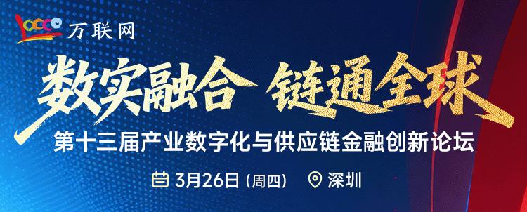 在此背景下,由万联网主办的2026第十三届产业数字化与供应链金融创新论坛,将于3月26日在深圳盛大举办,以“数实融合·链通全球”为主题,汇聚政、产、学、研、媒、金多方力量,共探转型路径、共商创新方案、共筑韧性生态,助力产业链供应链优化升级,服务新质生产力发展。