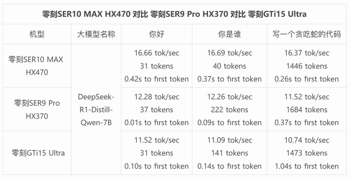 另外,对于本地AI处理速度,个人也是结合之前测评过的零刻SER9 Pro和零刻GTi15 Ultra,来给大家做个对比。