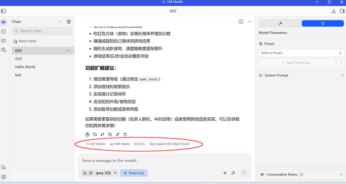 不管是Ollama还是LM Studio,原理都是一样的,你可以自由设置加载的是哪款AI模型,以DeepSeek-R1-Qwen-7B和32B为例,我进行了实测对比,GTi15 Ultra9 285H平均11.12 tokens/s,SER9 Pro HX370平均12.02 tokens/s,而零刻 SER10 MAX HX470 表现亮眼,平均速度可达16.57 tokens/s,展现出了更强的性能优势,能更流畅地支撑本地大模型运行。