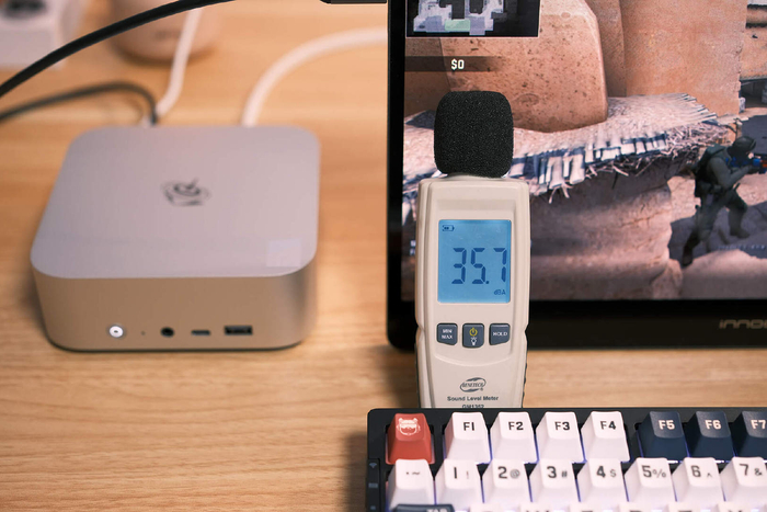 最后温度和噪音测试,SER10 MAX 硬件设计搭配MSC2.0散热系统+静音风扇,待机时噪音能低到35.7dB左右,而且这基本就是我的室内环境音,在游戏和压力测试高负载情况下,同样位置噪音能到40dB左右,而至于机身外壳,除了后方是出热风散热的地方之外,其它面基本都无热感,正面表温仅有25.9℃,就这么说吧,现在的零刻,噪音和散热表现就是迷你主机圈里的顶级。