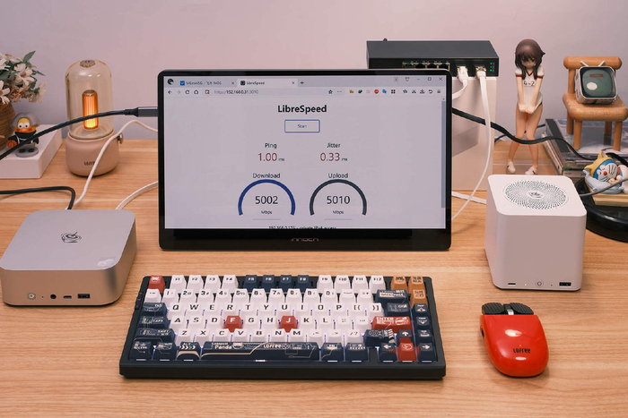 用OpenSpeedTest和LibreSpeed测试,上传下载速度都可以达到5000Mbps,也就说局域网传输是根本不受你的宽带带宽限制的,只和你的路由器是否支持万兆传输或者你所使用的交换机是否为万兆网口有关系,那如此一来,NAS当作本地硬盘来使用完全没有速度制约,无论是日常拷贝传输同步,还是剪映等视频剪辑软件直接拖NAS硬盘里的素材,完全没有任何卡顿,就和本地硬盘操作是一模一样的体验感受。