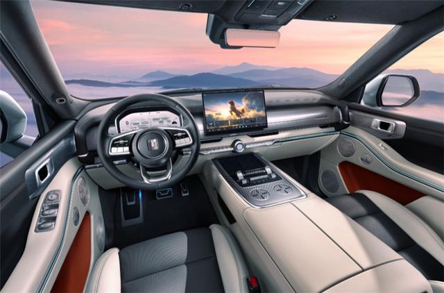 比如这个车顶尾翼,其设计灵感源自中华瑞兽麒麟的尾部昂扬有力的形态,更好地彰显了整车如同麒麟昂首蹲坐的文化表达。在功能性方面,这个尾翼也有一定的优化空气动力学表现的作用,这种创新设计在硬派越野领域是不多见的。