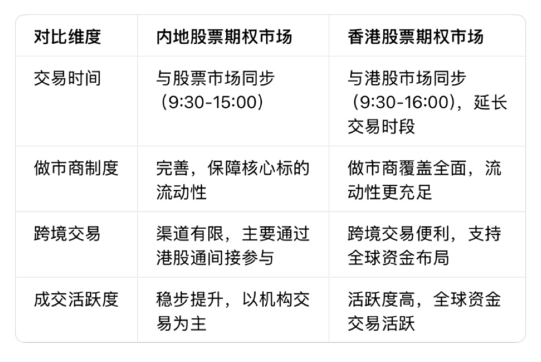 三、内地与香港股票期权市场核心差异对比