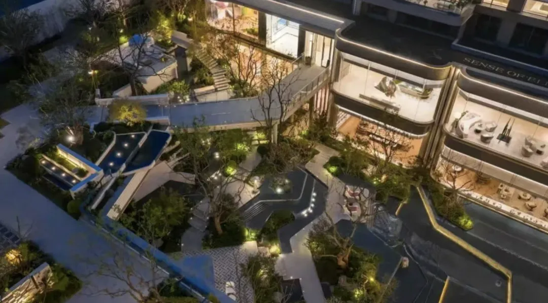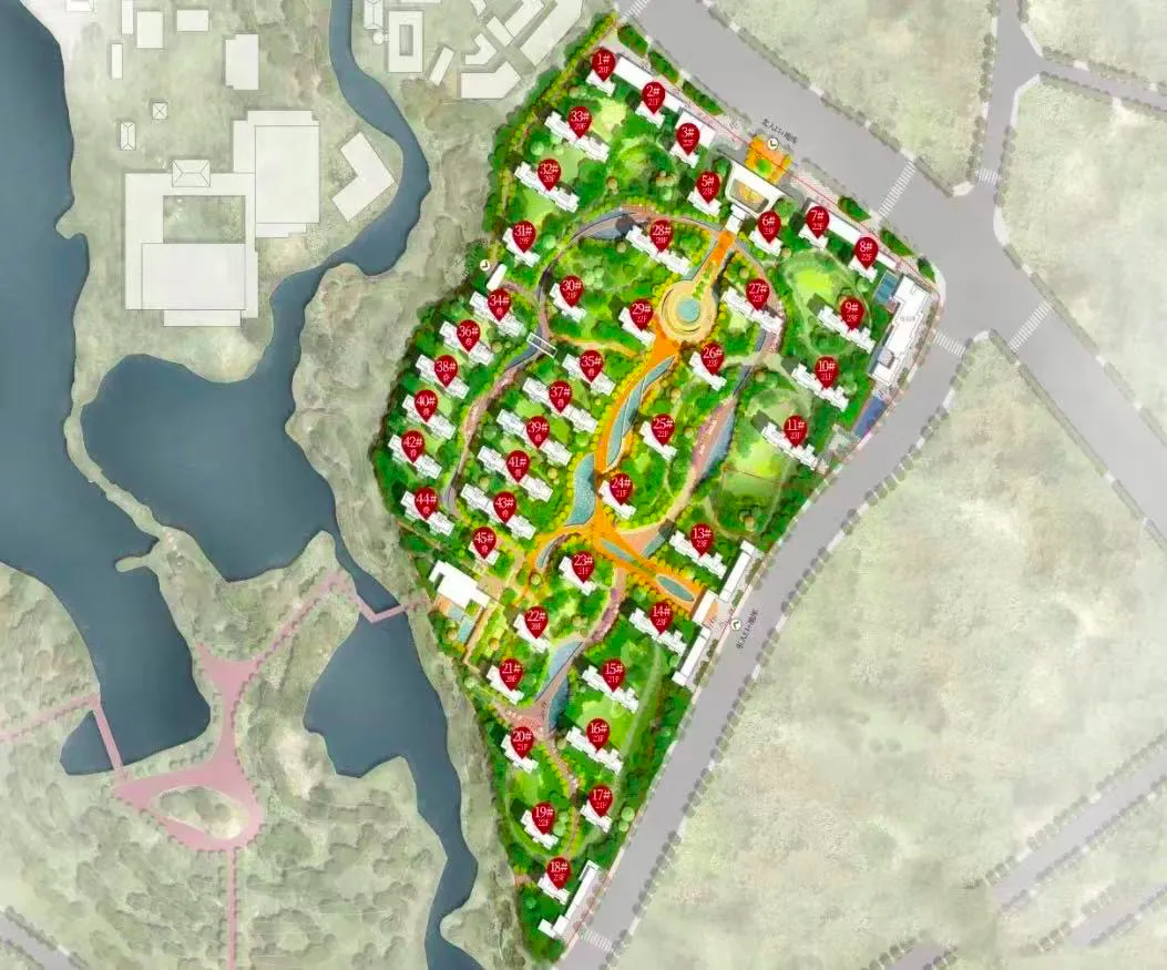 规划建面约123—143㎡的园璟平层、约168-225㎡的湖居上院大平层、约236-270㎡的湖屿叠院,整体采用南低北高的台地式布局。