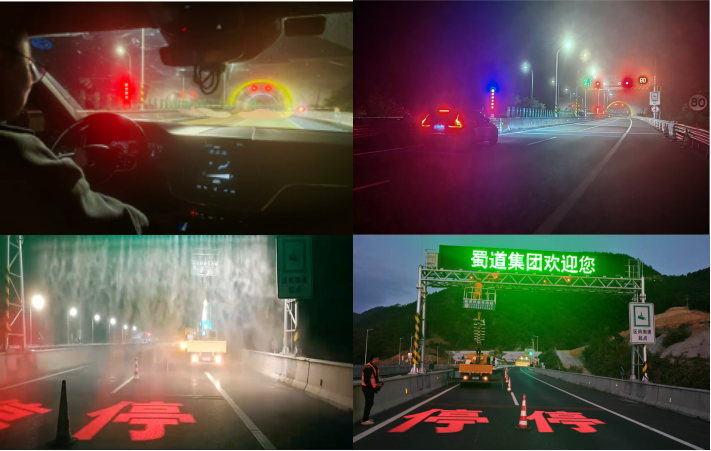 该技术成果由蜀道高速集团牵头,乐汉公司、蜀高实业公司参与,针对高速公路隧道事故后易发二次碰撞、传统被动防护响应迟缓、缺乏智能协同防控体系等行业痛点,现已成功研发出高速公路隧道洞口前馈式应急预警联动控制系统。系统通过前馈式智能预判实现隧道洞口险情主动预警与联动管控,可快速引导车辆避险,显著降低二次事故概率,推动隧道安全管理从被动处置向主动防控转型。这项成果已成功在金口河、火山隧道等多个隧道处安装与验证,不仅填补了国内隧道柔性主动防控系统的应用空白,还为相关行业标准的修订与实践提供了重要实证支撑。