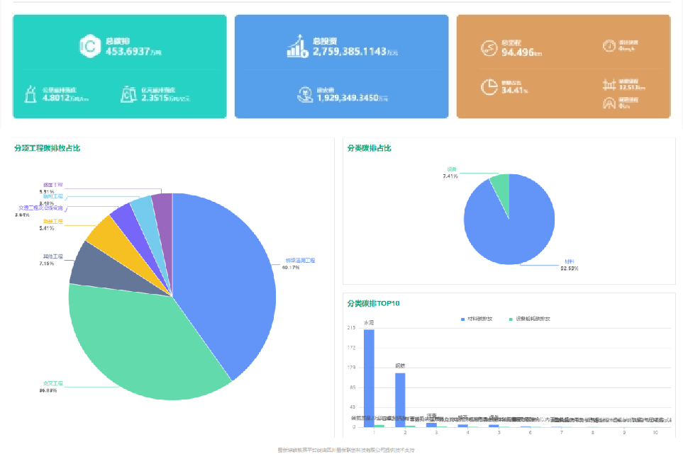 蜀新绿碳核算平台——公路项目建设期核算分析界面