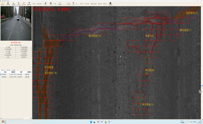 彭州市路面病害智能识别处理界面与识别效果