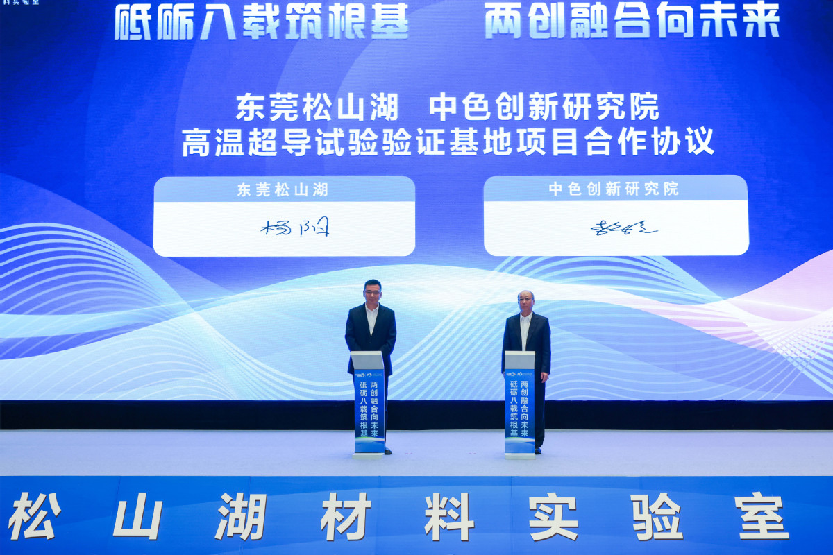 ▲图为《东莞松山湖中色创新研究院高温超导试验验证基地项目合作协议》签约仪式