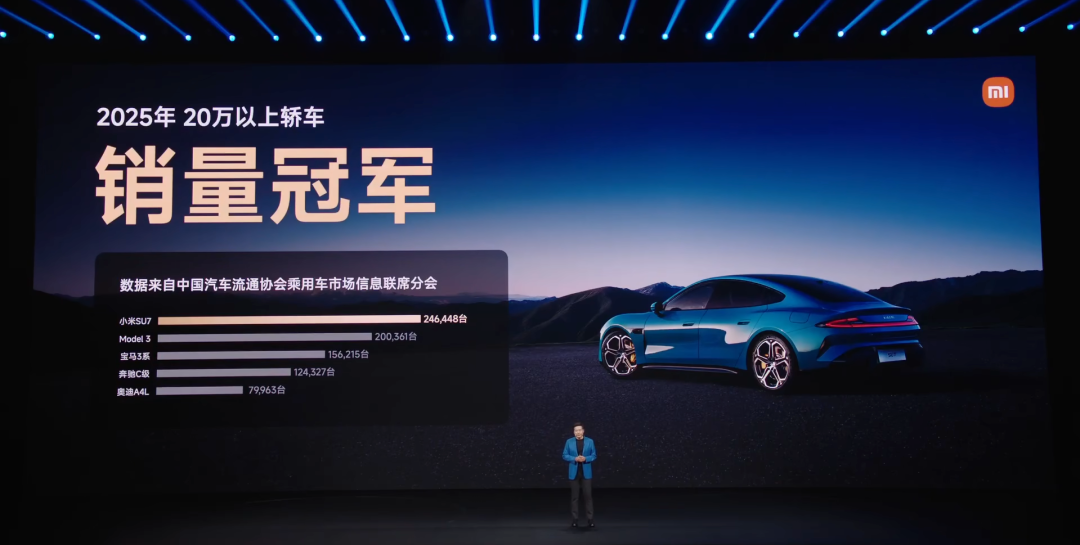 根据来源于中企协和乘联会的第三方终端销量数据,小米SU7从2025年8月开始跌落月销2万辆的台阶,到12月其月销已经下滑到11123辆。在此期间,特斯拉Model 3重新夺回20万—30万元级别纯电轿车销量冠军的位置。