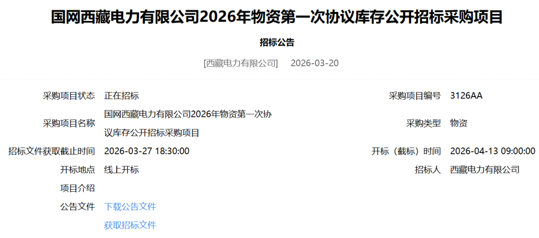 国网西藏电力有限公司2026年物资第一次协议库存公开招标采购项目招标公告