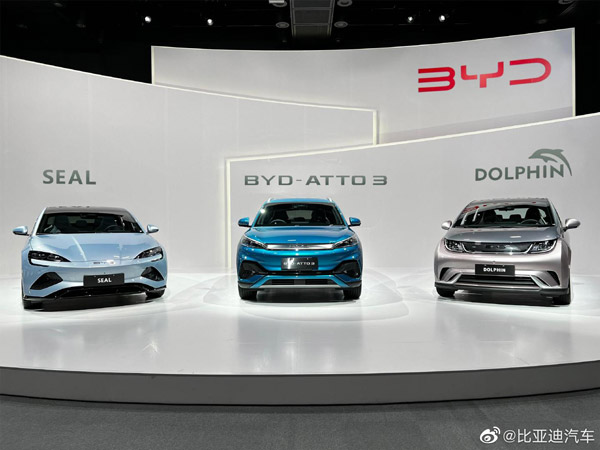 比亚迪在日本先期投放的三款车型:ATTO 3、海豚和海豹比亚迪
