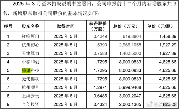 值得注意的是,腾讯于2025年6月跑步入场,通过增资入股方式成为公司的新增股东。截至招股说明书签署日,腾讯科技持有宇树217.9170万股股份,占公司总股本的0.5986%。