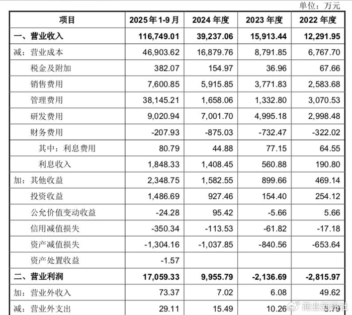 2022-2024年及2025年1-9月主营业务收入分别为1.23亿元、1.59亿元、3.92亿元、11.67亿元,呈快速增长趋势,2025年1-9月同比增幅超200%。
