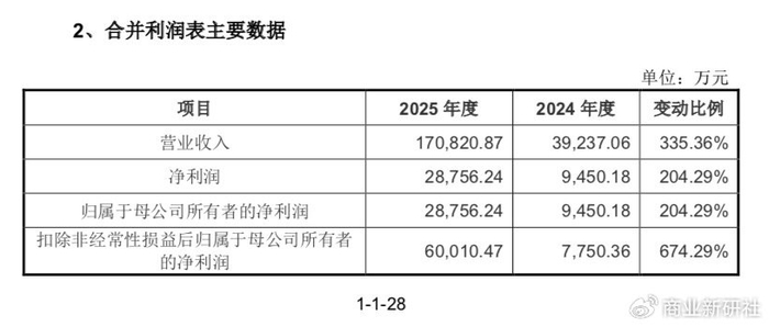 2025年度公司实现营业收入17.08亿元,同比增长335.36%;同期实现扣非后净利润6.00亿元,同比增长674.29%,主要原因为当期产品销量的快速增长。