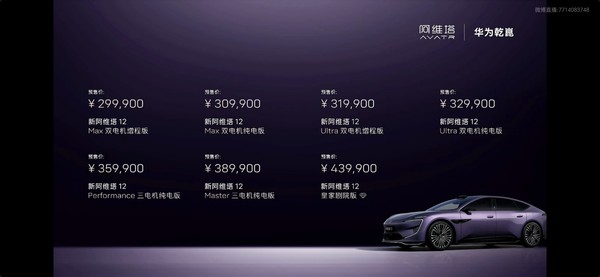 价格方面,新款阿维塔12预售价29.99万元起,具体信息参考上图。
