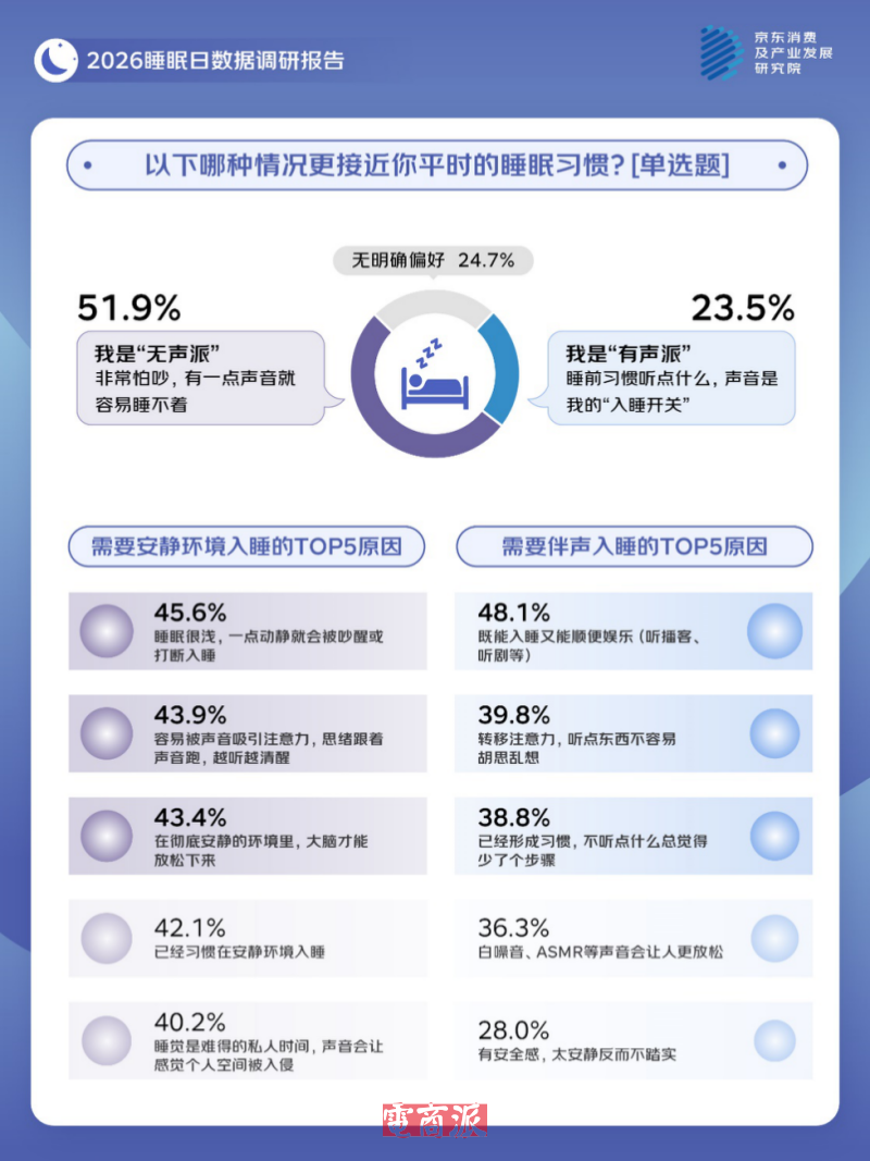 “无声派”VS“有声派”:45.6%人因浅睡易醒求静,近4成人靠声音平复情绪