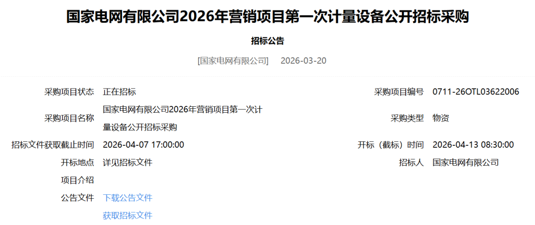 国家电网有限公司2026年营销项目第一次计量设备公开招标采购