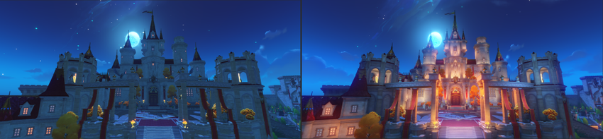 《洛克王国:世界》的高性能全局光照方案,则通过AI技术实现了不依赖高端显卡,也能流畅呈现24小时动态变化的电影级光影效果。相较于传统本地烘焙,这套方案的整体效率提升了数十倍。