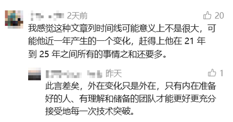 只是作为普通人,我们没办法预测变化。只能说在这个瞬息万变的时代,真正重要的是积累。就像另一位读者的回复:“只有内在准备好的人、有理解和储备的团队,才能更好更充分地接收每一次技术突破。”