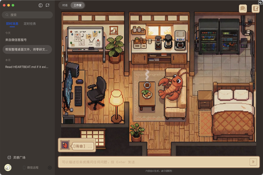 又比如腾讯刚刚公测的Qclaw,它目前的界面中就配置了一个可视化场景,那么当未来AI拥有更多权限,变得更聪明后,是否可以接管游戏代打,或者成为玩家的社交嘴替?这里面有着太多想象空间了。