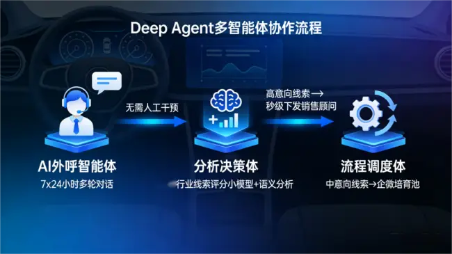 传统AI工具往往局限于单点功能,难以贯穿完整的业务流程。针对这一痛点,深演智能在DeepAgent 3.0中实现了多智能体协同落地,突破了单一智能体只能做小事的局限,能把不同场景的智能体串接成完整的业务流程。在专访中,深演智能以汽车行业为例,展示了如何把线索清洗、企微培育、到店接待、销售总结全链路用AI串起来形成闭环;在销售场景,通过多个智能体协同,实现用户打标、专属策略制定、个性化话术推荐的全流程赋能,实现“一人一策”的精准转化。这种多智能体协同技术,让每个智能体能够自主感知环境变化、智能调整协同策略,不断优化决策模型,高效支持复杂的业务场景,让智能体从单一工具升级为企业重构业务流程的核心抓手。
