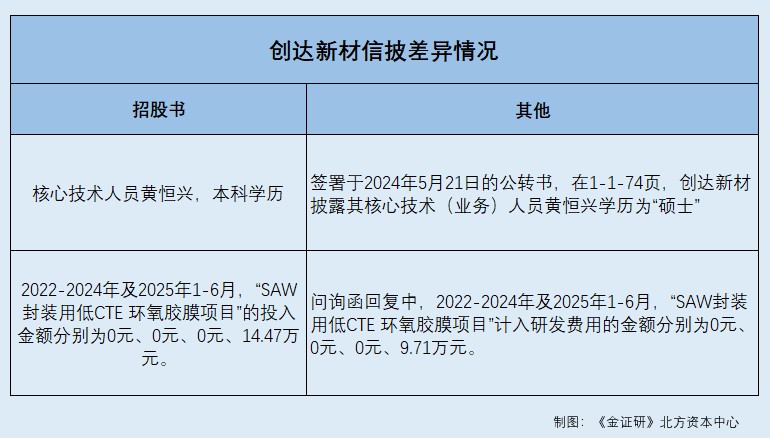 而在此情况下,创达新材“SAW封装用低CTE环氧胶膜项目”2025年1-6月研发投入额或现“不同版本”。
