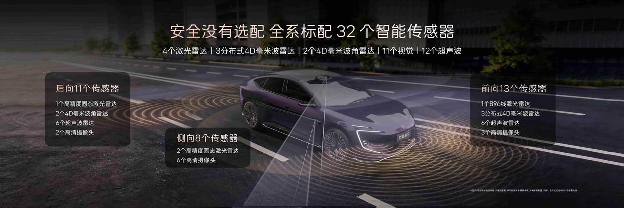 再加上 11 个外摄像头、2 个内摄像头、12 个超声波雷达和 3 个毫米波雷达,在传感器规格上,新款阿维塔 12 已经拉满了。