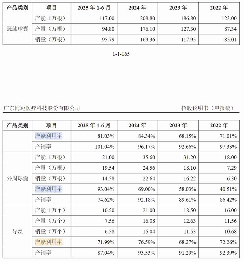 《大众证券报》明镜财经工作室记者注意到,博迈医疗报告期内的产能利用率虽有提高但整体并未饱和,核心产品冠脉球囊、外周球囊和导丝的产能利用率最高分别为84.34%、93.04%(2025年上半年数据,2024年为69%)和76.59%,但募投新建产能是三大产品2024年合计产能的近5.3倍。