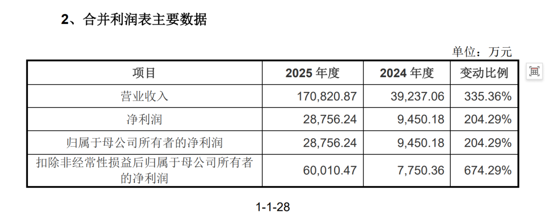 而根据其单独列示的25年年度业绩,营收增长335%至17.08亿,利润增长204%至2.88亿,是24年利润的3倍。