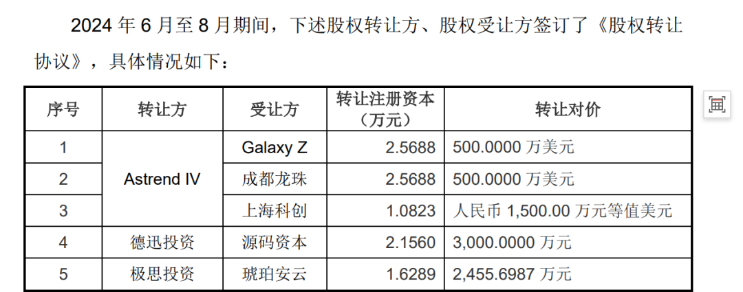 24年6月至8月,雷军的顺为资本套现1000万美元+1500万人民币,美团接手1000万美元,上海科创接手1500万元;源码资本再度受让3000万元。