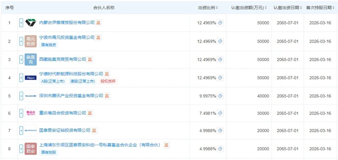 宁德时代、腾讯、泡泡玛特、唯品会等知名大厂都出资了。