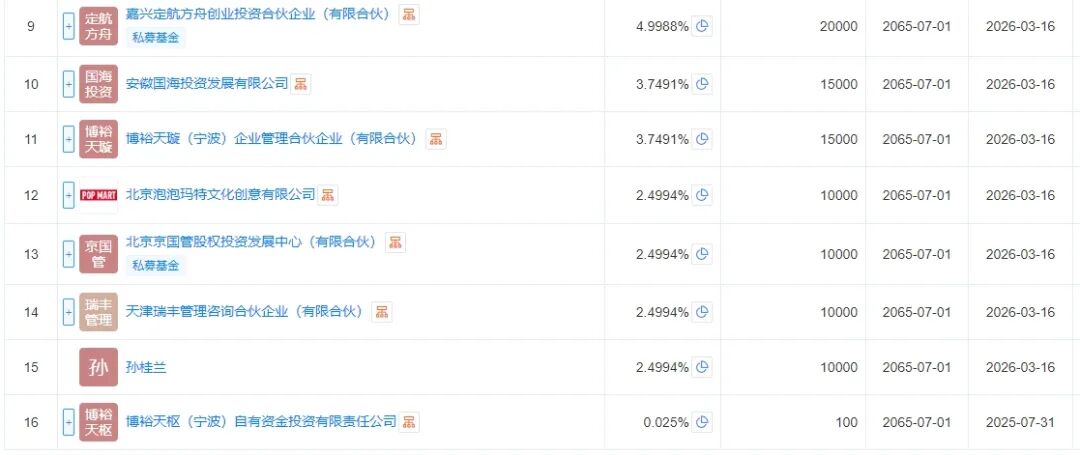 北京泡泡玛特文化创意有限公司,出资1亿元,约占2.49%;