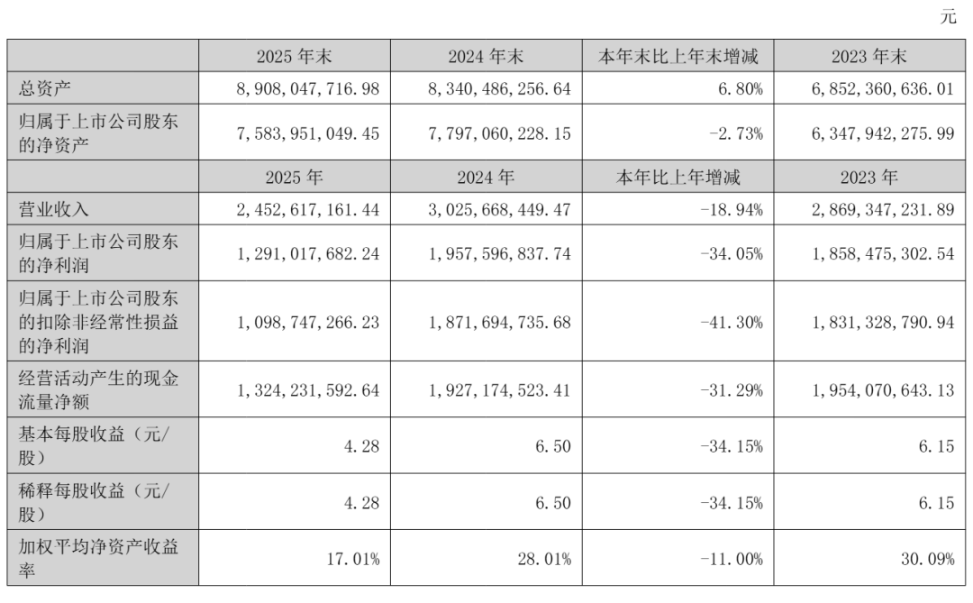 爱美客2025年净利为12.91亿元,较上年同期的19.58亿元下降34%;扣非后净利为11亿元,较上年同期的18.72亿元下降41.3%。
